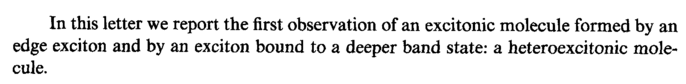 In this letter we report the first observation of an excitonic molecule formed by an edge exciton and by an exciton bound to a deeper band state: a heteroexcitonic molecule.