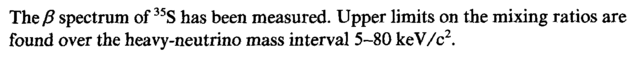 The β spectrum of 35S has been measured. Upper limits on the mixing ratios are found over the heavy-neutrino mass interval 5-80 keV/c2.