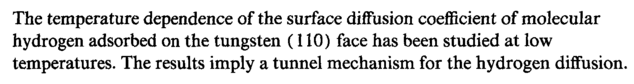 The temperature dependence of the surface diffusion coefficient of molecular hydrogen adsorbed on the tungsten (110) face has been studied at low temperatures. The results imply a tunnel mechanism for the hydrogen diffusion.