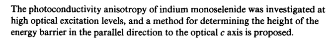 The photoconductivity anisotropy of indium monoselenide was investigated at high optical excitation levels, and a method for determining the height of the energy barrier in the parallel direction to the optical с axis is proposed.