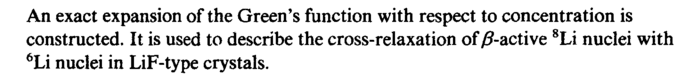 An exact expansion of the Green's function with respect to concentration is constructed. It is used to describe the cross-relaxation of /?-active 8Li nuclei with 6Li nuclei in LiF-type crystals.