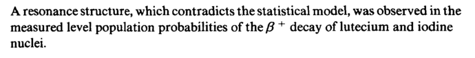 A resonance structure, which contradicts the statistical model, was observed in the measured level population probabilities of the/? + decay of lutecium and iodine nuclei.