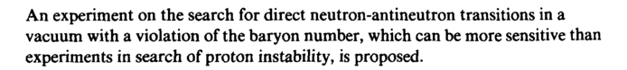 An experiment on the search for direct neutron-antineutron transitions in a vacuum with a violation of the baryon number, which can be more sensitive than experiments in search of proton instability, is proposed.
