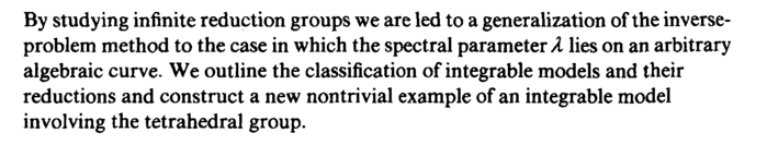 By studying infinite reduction groups we are led to a generalization of the inverse-problem method to the case in which the spectral parameter Я lies on an arbitrary algebraic curve. We outline the classification of integrable models and their reductions and construct a new nontrivial example of an integrable model involving the tetrahedral group.