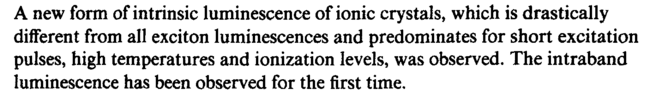 A new form of intrinsic luminescence of ionic crystals, which is drastically different from all exciton luminescences and predominates for short excitation pulses, high temperatures and ionization levels, was observed. The intraband luminescence has been observed for the first time.