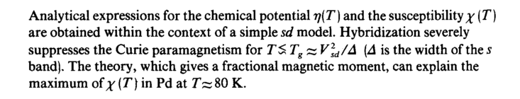Analytical expressions for the chemical potential η(Τ) and the susceptibility χ (Τ) are obtained within the context of a simple sd model. Hybridization severely suppresses the Curie paramagnetism for TS Tg s V\d/A (Δ is the width of the s band). The theory, which gives a fractional magnetic moment, can explain the maximum of χ (Τ) in Pd at 7~ 80 K.