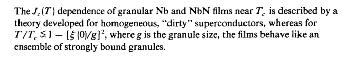 The JC(T) dependence of granular Nb and NbN films near Tc is described by a theory developed for homogeneous, "dirty" superconductors, whereas for T/Tc SI — [ξ {0)/g]2, where g is the granule size, the films behave like an ensemble of strongly bound granules.