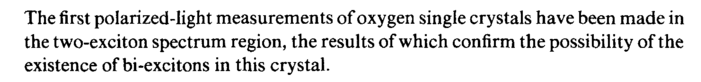 The first polarized-light measurements of oxygen single crystals have been made in the two-exciton spectrum region, the results of which confirm the possibility of the existence of bi-excitons in this crystal.