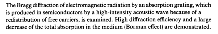 The Bragg diffraction of electromagnetic radiation by an absorption grating, which is produced in semiconductors by a high-intensity acoustic wave because of a redistribution of free carriers, is examined. High diffraction efficiency and a large decrease of the total absorption in the medium (Borman effect) are demonstrated.