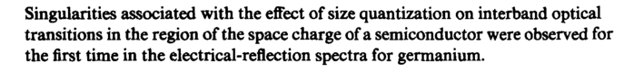Singularities associated with the effect of size quantization on interband optical transitions in the region of the space charge of a semiconductor were observed for the first time in the electrical-reflection spectra for germanium.