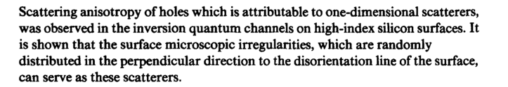 Scattering anisotropy of holes which is attributable to one-dimensional scatterers, was observed in the inversion quantum channels on high-index silicon surfaces. It is shown that the surface microscopic irregularities, which are randomly distributed in the perpendicular direction to the disorientation line of the surface, can serve as these scatterers.
