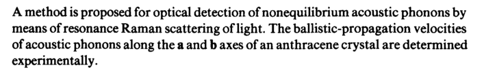 A method is proposed for optical detection of nonequilibrium acoustic phonons by means of resonance Raman scattering of light. The ballistic-propagation velocities of acoustic phonons along the a and b axes of an anthracene crystal are determined experimentally.
