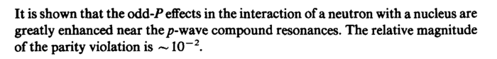 It is shown that the odd-P effects in the interaction of a neutron with a nucleus are greatly enhanced near the />-wave compound resonances. The relative magnitude of the parity violation is ~10 ~2.