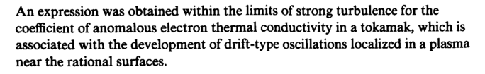 An expression was obtained within the limits of strong turbulence for the coefficient of anomalous electron thermal conductivity in a tokamak, which is associated with the development of drift-type oscillations localized in a plasma near the rational surfaces.
