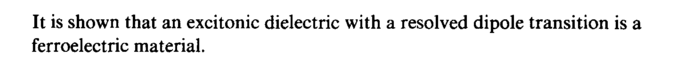 It is shown that an excitonic dielectric with a resolved dipole transition is a ferroelectric material.