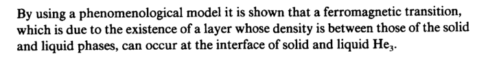 By using a phenomenological model it is shown that a ferromagnetic transition, which is due to the existence of a layer whose density is between those of the solid and liquid phases, can occur at the interface of solid and liquid He3.