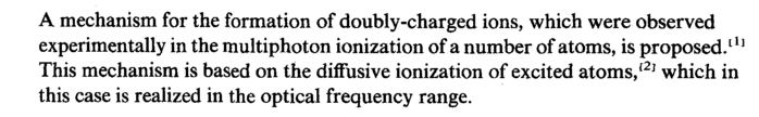 A mechanism for the formation of doubly-charged ions, which were observed experimentally in the multiphoton ionization of a number of atoms, is proposed.111 This mechanism is based on the diffusive ionization of excited atoms/21 which in this case is realized in the optical frequency range.