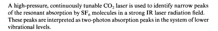 A high-pressure, continuously tunable C02 laser is used to identify narrow peaks of the resonant absorption by SF6 molecules in a strong IR laser radiation field. These peaks are interpreted as two-photon absorption peaks in the system of lower vibrational levels.