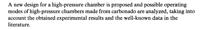 A new design for a high-pressure chamber is proposed and possible operating modes of high-pressure chambers made from carbonado are analyzed, taking into account the obtained experimental results and the well-known data in the literature.