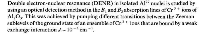 Double electron-nuclear resonance (DENR) in isolated Al nuclei is studied by using an optical detection method in the В x and B2 absorption lines of Cr3 + ions of A1203. This was achieved by pumping different transitions between the Zeeman sublevels of the ground state of an ensemble of Cr3 + ions that are bound by a weak exchange interaction /~10 ~3 cm ~1.