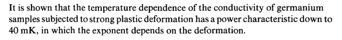 It is shown that the temperature dependence of the conductivity of germanium samples subjected to strong plastic deformation has a power characteristic down to 40 mK, in which the exponent depends on the deformation.
