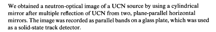 We obtained a neutron-optical image of a UCN source by using a cylindrical mirror after multiple reflection of UCN from two, plane-parallel horizontal mirrors. The image was recorded as parallel bands on a glass plate, which was used as a solid-state track detector.