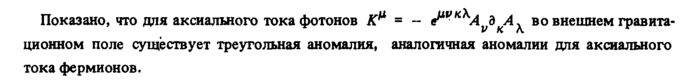 Показано, что для аксиального тока фотонов Κμ = (Ρνκ А Ъ А* во внешнем гравитационном поле существует треугольная аномалия, аналогичная аномалии для аксиального тока фермионов.