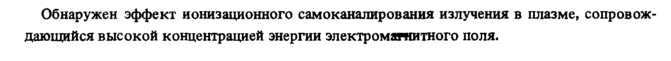 Обнаружен эффект ионизационного самоканалирования излучения в плазме, сопровождающийся высокой концентрацией энергии электромагнитного поля.