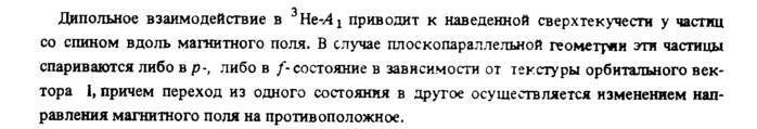 Дипольное взаимодействие в Не~А1 приводит к наведенной сверхтекучести у частиц со спином вдоль магнитного поля. В случае плоскопараллельной геомегряи эти частицы спариваются либо в ρ-, либо в /-состояние в зависимости от текстуры орбитального вектора 1, причем переход из одного состояния в другое осуществляется изменением направления магнитного поля на противоположное.