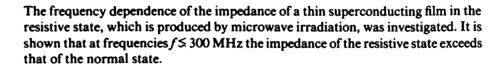 The frequency dependence of the impedance of a thin superconducting film in the resistive state, which is produced by microwave irradiation, was investigated. It is shown that at frequencies / 5 300 MHz the impedance of the resistive state exceeds that of the normal state.