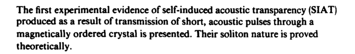 The first experimental evidence of self-induced acoustic transparency (SI AT) produced as a result of transmission of short, acoustic pulses through a magnetically ordered crystal is presented. Their soliton nature is proved theoretically.