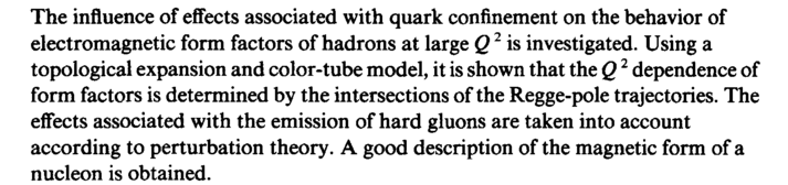 The influence of effects associated with quark confinement on the behavior of electromagnetic form factors of hadrons at large Q2 is investigated. Using a topological expansion and color-tube model, it is shown that the Q2 dependence of form factors is determined by the intersections of the Regge-pole trajectories. The effects associated with the emission of hard gluons are taken into account according to perturbation theory. A good description of the magnetic form of a nucleon is obtained.