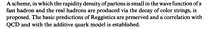 A scheme, in which the rapidity density of partons is small in the wave function of a fast hadron and the real hadrons are produced via the decay of color strings, is proposed. The basic predictions of Reggistics are preserved and a correlation with QCD and with the additive quark model is established.