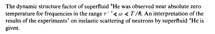 The dynamic structure factor of superfluid 4He was observed near absolute zero temperature for frequencies in the range r~ '< ω < Τ /И. An interpretation of the results of the experiments' on inelastic scattering of neutrons by superfluid 4He is given.