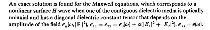 An exact solution is found for the Maxwell equations, which corresponds to a nonlinear surface Η wave when one of the contiguous dielectric media is optically uniaxial and has a diagonal dielectric constant tensor that depends on the amplitude of the field €#(ω,\Ε |2), en = €22 — *oM + ai\E\ 12 + \Ei\2)> езз = €(ω)>