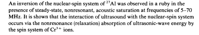 An inversion of the nuclear-spin system of Al was observed in a ruby in the presence of steady-state, nonresonant, acoustic saturation at frequencies of 5-70 MHz. It is shown that the interaction of ultrasound with the nuclear-spin system occurs via the nonresonance (relaxation) absorption of ultrasonic-wave energy by the spin system of Cr3+ ions.
