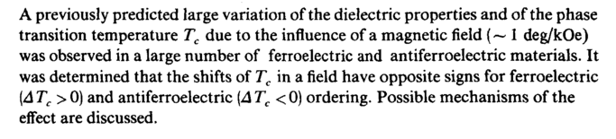 A previously predicted large variation of the dielectric properties and of the phase transition temperature Tc due to the influence of a magnetic field (~ 1 deg/kOe) was observed in a large number of ferroelectric and antiferroelectric materials. It was determined that the shifts of Tc in a field have opposite signs for ferroelectric [Δ Tc > 0) and antiferroelectric {Δ Tc < 0) ordering. Possible mechanisms of the effect are discussed.