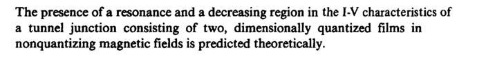 The presence of a resonance and a decreasing region in the I-V characteristics of a tunnel junction consisting of two, dimensionally quantized films in nonquantizing magnetic fields is predicted theoretically.
