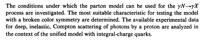 The conditions under which the parton model can be used for the γΝ-+γΧ process are investigated. The most suitable characteristic for testing the model with a broken color symmetry are determined. The available experimental data for deep, inelastic, Compton scattering of photons by a proton are analyzed in the context of the unified model with integral-charge quarks.