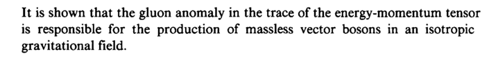 It is shown that the gluon anomaly in the trace of the energy-momentum tensor is responsible for the production of massless vector bosons in an isotropic gravitational field.