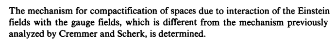 The mechanism for compactification of spaces due to interaction of the Einstein fields with the gauge fields, which is different from the mechanism previously analyzed by Cremmer and Scherk, is determined.