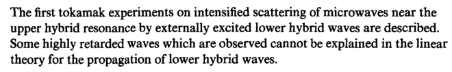The first tokamak experiments on intensified scattering of microwaves near the upper hybrid resonance by externally excited lower hybrid waves are described. Some highly retarded waves which are observed cannot be explained in the linear theory for the propagation of lower hybrid waves.