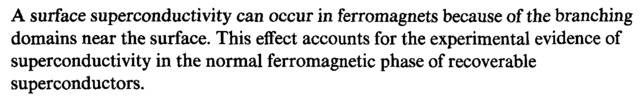 A surface superconductivity can occur in ferromagnets because of the branching domains near the surface. This effect accounts for the experimental evidence of superconductivity in the normal ferromagnetic phase of recoverable superconductors.