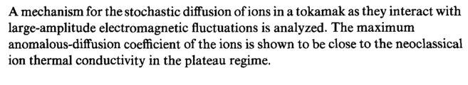 A mechanism for the stochastic diffusion of ions in a tokamak as they interact with large-amplitude electromagnetic fluctuations is analyzed. The maximum anomalous-diffusion coefficient of the ions is shown to be close to the neoclassical ion thermal conductivity in the plateau regime.