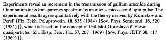 Experiments reveal an increment in the transmission of gallium arsenide during illumination in its transparency spectrum by an intense picosecond light pulse. The experimental results agree qualitatively with the theory derived by Kumekov and Perel' {Fiz. Tekh. Poluprovodn. 18, 835 (1984) [Sov. Phys. Semicond. 18, 520 (1984) ]}, which is based on the concept of Galitskii-Goreslavskii-Elesin quasiparticles {Zh. Eksp. Teor. Fiz. 57, 207 (1969) [Sov. Phys. JETP 30, 117 (1969)]}.