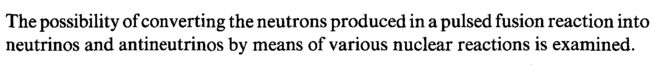 The possibility of converting the neutrons produced in a pulsed fusion reaction into neutrinos and antineutrinos by means of various nuclear reactions is examined.