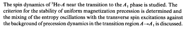 The spin dynamics of 3Ht-A near the transition to the A x phase is studied. The criterion for the stability of uniform magnetization precession is determined and the mixing of the entropy oscillations with the transverse spin excitations against the background of precession dynamics in the transition region A^A ^ is discussed.