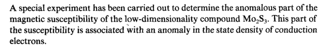 A special experimen t has been carried out to determine the anomalous part of the magnetic susceptibility of the low-dimensionality compound Mo2S3. This part of the susceptibility is associated with an anomaly in the state density of conduction electrons.