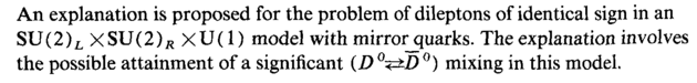 An explanation is proposed for the problem of dileptons of identical sign in an SO(2)L XS\J(2)R XU(1) model with mirrorquarks. The explanation involves the possible attainment of a significant (D °+±D°) mixing in this model.