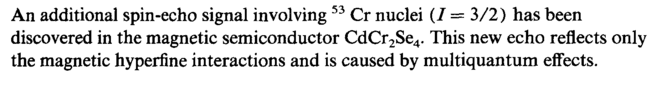 An additional spin-echo signal involving 53 Cr nuclei (J = 3/2) has been discovered in the magnetic semiconductor CdCr2Se4. This new echo reflects only the magnetic hyperfine interactions and is caused by multiquantum effects.